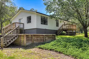 Nestled on 2.4 acres, this updated home offers the perfect blend of charm, privacy, and space. A large living room with built-in shelving flows seamlessly into the kitchen, which features cheerful cabinetry, butcher block-style counters, a farmhouse sink, and a cozy dining area. Fresh flooring runs throughout the main living spaces, adding warmth and character. The oversized laundry/utility room provides convenient access to the backyard and extra storage. Enjoy outdoor living from any angle with three separate decks, each offering unique views of the serene property. The spacious primary suite features a walk-in closet, a board and batten accent wall, and bead board detail for a custom touch. The updated primary bath is a true retreat with tile flooring, wood ceilings, a shiplap accent wall, and modern fixtures. A large, flat, fenced backyard is perfect for entertaining, pets, or play, while the long private driveway offers a peaceful sense of seclusion. This home is a rare find with both charm and land-don't miss it!