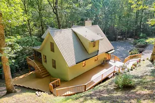 Located on 3.28 acres, this beautifully maintained homestead perfectly balances tranquil seclusion with convenient access to the local fare of Hiawassee, being minutes away. Step inside to experience a true cabin ambiance, featuring wood walls and a cathedral ceiling, a floor-to-ceiling stone fireplace, an open dining area and kitchen, and stairs leading to a loft. The kitchen features beautiful light shiplap ceilings, maple cabinetry, and stainless steel appliances. Adjacent to the kitchen is the Primary Suite, featuring an updated seamless glass shower, a walk-in closet, and private access to the screened porch that overlooks a wooded backdrop. Venture upstairs to find a charming sleeping loft and a private guest suite with an updated bath. The lower level is equally impressive with a bedroom with a full bath, flex room, practical laundry facilities in the utility room. Plus, a workshop area with garage door access for your ATV adds convenience to your outdoor lifestyle, in addition to a covered patio that leads to a lower-level open-air deck. Two driveways optimize access-one leads to a welcoming open-air deck and the main level, while the other navigates directly to the lower level. The beautifully landscaped grounds, adorned with rock walls and native plants, require minimal upkeep. Naturally, mountain property becomes more appealing when complemented by a peaceful creek to enjoy. With a carport and handy storage outbuilding, this property has everything you need to embrace a quiet lifestyle in this exceptional mountain haven!