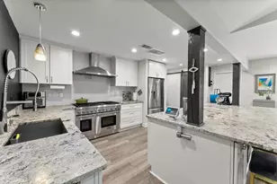 - Kitchen: Breakfast Bar, White Cabinets, Kitchen Island, Pantry, Stone Counters, View to Family Room, Wine Rack