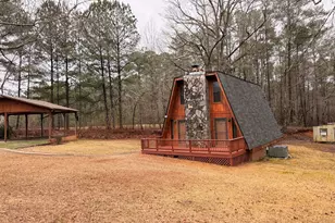 A stone's throw from West Point Lake! 3 bed / 2 bath A-Frame with an expansive yard, detached carport, workshop and 3 additional outbuildings. Spacious deck overlooking manicured front lawn, Galley kitchen with stainless appliances, Pantry, Gas fireplace, Primary bedroom on the main level with ensuite bath complete with tile shower, Property backs up to Corps of Engineers land.