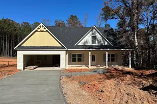 BRAND-NEW home located in Mansfield, (Jasper County Schools) with 4 bedrooms, 2.5 bathrooms and very spacious with approx. 2265 heated square feet on 2+ ACRES located in a low-traffic cul-de-sac lot that backs up to a 200+ acres. Estimated completion date is December 2025. Interior photos are from another finished home for marketing purposes. The exterior features James Hardie siding, architectural shingles, covered front & back porches, upgraded landscape design with 4 sides Bermuda sod & plants installed on all 4 sides. The interior features the master bedroom on main level, vaulted family room with fireplace, trey ceiling in master bedroom, LVP flooring in the family room, kitchen, laundry & secondary baths, carpet in bedrooms, shaker style kitchen cabinets with soft close hinges, coffered ceiling in dining room, stainless appliances, granite countertops & tile backsplash, master bath has a double vanity, tile shower with frameless shower door, ceramic tile floor, soaking tub, large walk-in closet & spacious laundry room on main level. Centrally located to Monticello, Covington & Jackson & just 2 miles from Bear Creek Marina at Jackson Lake. Contact your Realtor to schedule your private showing today.