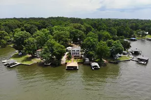 Beautiful lake views from all living spaces! Double doors open up to the walk out deck off of all bedrooms and family room. Updated with new countertops, center island and big kitchen that overlooks the large family room and the lake. New wood floors throughout. Large bedrooms, both with ensuites. Primary bedroom has large walk in closet and double vanity. Beautifully updated walk-in showers with new tile and glass doors. Wonderful, covered dock with one boat slip great for relaxation or entertaining. Private boat ramp. Outbuilding for ample storage. Deeded lot. This is a one of a kind beauty!