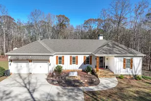 Discover refined Southern living on nearly 8 private acres. This sophisticated Craftsman ranch blends timeless elegance with modern comfort, offering an open, light-filled layout, serene outdoor spaces, and room to create a legacy property. Step inside to warm oak hardwood floors, high ceilings, and an airy floor plan designed for both everyday living and effortless entertaining. The great room is anchored by a stunning stone fireplace flanked by custom built-ins, creating an inviting space to gather. Sunlight streams through the expansive windows, bringing the surrounding forest views indoors. The gourmet kitchen impresses with a large island with seating, granite countertops, a gas cooktop with slide-out spice rack, and a beautiful, vented hood. A spacious screened-in porch, accessible through dining room is an ideal place to enjoy morning coffee or an evening glass of wine while listening to nature. A walk-in pantry, mudroom with built-ins, and a thoughtfully placed powder room add are conveniently tucked by attached garage entrance. Designed with privacy in mind, the split bedroom layout features two guest bedrooms-each with a walk-in closet-on one wing of the home. The luxurious primary suite occupies its own private wing and includes two walk-in closets, a double shower, separate vanity spaces, and direct access to a covered deck currently home to a relaxing hot tub. The expansive terrace level offers 2,567 sq ft of potential with a wide hardwood staircase, a second fireplace, tall ceilings, and 3 framed rooms with windows-ready to be transformed into additional bedrooms, a recreation level, in-law suite, or whatever your lifestyle requires. Two covered patio areas, including one with a hanging daybed, extend your living space outdoors. Car enthusiasts, hobbyists, or those seeking exceptional storage will love the impressive 1,500 sq ft ClearSpan shop-complete with six skylights and plenty of room for an RV, boat, workshop, or equipment. Surrounded by 7.75 acres of wooded beauty and designed with sophistication and comfort in mind, this property offers the rare opportunity to enjoy an elegant lifestyle with space, privacy, and endless possibilities.
