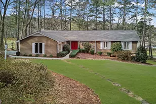 BEAUTIFUL RANCH HOME ON THE GOLF COURSE AT NEWNAN COUNTRY CLUB!! The Kitchen has Corian countertops, stainless appliances, Corian top island with Breakfast bar & hardwood flooring. Breakfast area with hardwood flooring! Family Room with sliding glass door overlooking the 11th fairway & 18th fairway at Newnan Country Club!! Primary bedroom on main with LVP flooring, walk-in closet with built-ins, plantation shutters. Tiled primary bathroom with double vanities with quartz countertop, tiled zero entry shower with frameless glass. 2 guest bedrooms on main, both with closets and a tiled guest bathroom in hallway with vanity & shower/tub. Laundry room in hallway with mud sink, walk-in storage closet, second closet with pull out drawers & cabinets above washer & dryer & hanging rod. Full basement that is partially finished with a nice TV room with a tiled half bath & stone surround fireplace with propane gas logs! Room with two closets that could make a great office, 4th bedroom (home is currently permitted for 3 bedrooms) or an exercise room. Large unfinished area with high ceilings that is perfect for storage or expanding the square footage of the home. Large deck that extends across the back of the house overlooking the golf course!! Home is nestled on a quiet cul-de-sac lot!!
