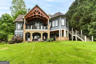 Welcome to lakeside opulence, where every detail of this Lake Chatuge abode reflects the pinnacle of luxury living. Located on 1.73 acres, the home's open floor plan seamlessly integrates into the great room, graced with a cathedral ceiling, exposed beams, and a majestic floor-to-ceiling stacked stone gas log fireplace. Walls of windows paint serene water vistas, allowing natural light to dance upon a tasteful blend of wood and drywall finishes. The heart of the home is its vast kitchen, boasting granite counters and a gas stove, complemented by a substantial dining area, perfect for hosting memorable gatherings with loved ones. Two ensuite bedrooms provide private havens, with the primary suite offering a lakeside sitting area, his and hers closets, plus a spa-like bathroom featuring an air tub, and a walk-in shower encased in glass and tile. A conveniently located laundry room adds to the practicality of distinguished living. Ascend to the upper level to find a generous recreational room that promises leisure and play. The lower level extends the comforts found above with a second great room adorned with another stacked stone gas log fireplace, a second full kitchen, a third & fourth bedroom, and an additional laundry room, offering potential for a self-contained living space. Outside, the stone patio is an entertainer's dream, boasting an outdoor kitchen with granite counters, a gas grill, and a Primo Ceramic charcoal grill, ensuring alfresco dining is always an event. The crown jewel is the private single slip covered boat dock with boat lift, promising endless waterborne adventures on Lake Chatuge. Plus there is a 2 car garage.