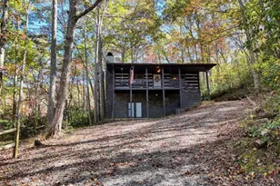 ATTENTION ALL HUNTERS!!! Escape to your own private mountain retreat with this charming log-style home nestled on 8+ wooded acres in scenic Young Harris, Georgia. Would also make a great hunting cabin or rental. Surrounded by nature and bordering U.S. Forest Service land, this property offers unmatched peace, privacy, and a true North Georgia mountain lifestyle. Step inside to a warm and inviting interior featuring exposed beams, rich wood finishes, and an open-concept living space. The main level boasts a cozy living room, spacious kitchen, and access to a covered front porch and open deck-perfect for relaxing or entertaining while taking in the tranquil forest views. The home includes 3 bedrooms and 2 1/2 baths, with the terrace level partially finished to include a bonus living area and second kitchen, ideal for guests or multi-generational living. A detached three-stall garage and additional outbuilding provide ample storage and workspace. Outside, enjoy a peaceful creek meandering through the property, abundant wildlife, and endless potential for gardens, trails, or outdoor recreation. Located just minutes from Young Harris College, Lake Chatuge, and Downtown Hiawassee, this home combines seclusion with convenience.