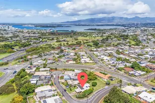 Your new home awaits you in the Heart of Halawa! Set atop the hill surrounded by flowering plumeria trees, this 4 bed, 3 bath SFH has been lovingly cared for by one family over many decades. Upon entering the front door, you'll be greeted by the large and spacious living room with vaulted ceilings and rustic, wooden paneled walls, dotted with windows that let in tons of natural light and cool breezes. Make your way past the bartop seating and dining area to the fully stocked kitchen, complete with ample countertop and storage space. The primary bedroom offers a walk-in closet, and a unique built-in desktop that can be used as either a work-from-home setup, or a vanity. Last, but certainly not least, head out to your fully enclosed yard. With a lockable fence, and fresh grass underfoot, this is the perfect place for young keiki or pets to play outdoors, whilst keeping them safe. In addition to split ACs, the home has an OWNED PV system to cut the cost of your electric bills throughout the year. Located just a short drive from the on-ramp, Aloha Stadium, Aiea Shopping Center, and Pearl Harbor, this is a hidden gem, not to be missed.