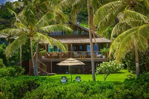 Welcome to Stunning Sunsets and one of the Top white sand beaches on the North Shore and Oahu! This very unique North Shore beachfront home, beautifully upgraded and well appointed, is just steps to the sand. Scenic views from the luscious lawn, living room, kitchen, upstairs-loft suite, and covered lanai include seasonal surf and whale watching. The well established landscaping and vegetation ensure privacy from beach. Ideally located in the middle of the "Seven Mile Miracle", close to schools, shopping, golf, snorkeling, churches and some of the best surf breaks in the world. Spilt AC Throughout. Pets negotiable. Rental insurance and Credit check required.