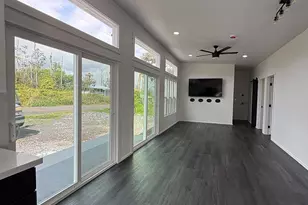 Brand new modern farmhouse with dramatic high slant ceilings and an open, light-filled layout. This 3 bedroom, 2 bath home features luxury black vinyl plank flooring and custom hardwood cabinetry throughout. The kitchen stands out with quartz countertops, matching Samsung black stainless appliances, a large custom pantry, pot filler above the stove, and a bold 36" black stainless farmhouse sink as the centerpiece. Remote-control ceiling fans are installed in every room for comfort and convenience. Bathrooms feature full custom tile walk-in shower, while the primary bath includes a soaking tub with bench seat and waterfall shower head. Large windows bring in abundant natural light and offer a peekaboo ocean view. Also included is a 70" flat screen TV and an in-wall Kicker Bluetooth sound system. Ring surveillance floodlight cameras are installed on the front and back of the home. Modern farmhouse style combined with thoughtful upgrades makes this home truly move-in ready. All comments, data is provided by seller or seller's representatives. Buyer to confirm all & hold all parties harmless from any discrepancy data in the mls and advertising.
