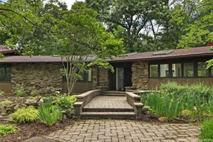 Sprawling Barrington Hills California Ranch home with 4 bedrooms, 5.1 bathrooms, with in-ground swimming pool, hot tub/spa, and sauna. This spacious home is situated on 4.96 acres surrounded by majestic mature trees, professional landscaping, and fenced/irrigated garden. See photos for aerial of the multiple raised garden beds, and shed. This is an organic gardener's delight! Separate outdoor front entrance to the east wing's spacious room that could be an in-law suite or rec room, with fireplace and sliding door exit to outdoor patio. Expansive primary suite with sitting area and bedroom separated by double sided fireplace. Huge walk-in closet and elegant bathroom flooded with natural light. Two more ensuite bedrooms; one with floor to ceiling oversized windows and access to an outdoor patio. 4th bedroom with separate entrance to the hallway full bath. Wonderful family room adjacent to the kitchen with a wall of windows, fireplace, wet bar, and sliding door to exterior patio and stairs up to the swimming pool area. Large kitchen with dining/hearth room. Separate area one step up from the Living Room next to the kitchen was used as a dining room. Lovely screened porch accessible from the living room. Pool House with kitchen, bathroom, sauna and pool equipment storage room. Perfect for summer pool parties! New roof 2022/23, skylights replaced in 2012, HVAC and water heater replaced in 2015. Bedroom and bathroom remodeled in 2019. Whole house generator added in 2019, whole house water filter added in2021, and constant pressure well pump added in 2010. School bus service to highly acclaimed District 220 Barrington schools. Barrington Hills horse riding trails. Great location with convenient access to restaurants, shopping, Metra train, and xpressways. This is one-level living at its very finest in prestigious Barrington Hills. Don't miss it!