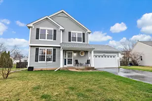 Don't miss this beautiful and updated 3 bedroom, 2 and a half baths custom home with gorgeous updated kitchen and baths, 9 foot ceilings and stylish details throughout! First floor wood laminate floors with spacious foyer, opens to bright and comfortable living room with double sided fireplace, custom niche and easy entry into large dining room with vaulted ceiling, an extra-large fireplace mantel and transom window. Fully updated kitchen is stunning with shaker cabinets, quartz counters, black stainless appliances, an oven air fryer feature, crown molding and two pantries! Large kitchen sliding door leads to patio and fenced back yard with two raised garden beds, an asparagus garden, newer above ground pool (2019) and storage shed. Off foyer, access the heated garage with workbench and built-in storage and updated half bath with ceramic tile floor. Upstairs, enjoy the roomy and comfortable master bedroom with walk-in closet and large updated bathroom with double vanity, soaking tub, separate shower and transom window. Two additional bedrooms offer ample closet space and lots of natural light with convenient access to updated hall bath with ceramic floors, full bathtub and transom window. Sizable unfinished basement for storage with roughed in plumbing for added bathroom and loads of potential for additional living space! Updates include all kitchen appliances (2021-2022), Sump Pump (2024), Washer/Dryer (2020), Water Heater (2019), Roof (2017). Neighborhood offers two ponds and is conveniently located near golf, recreation, dining, shopping, transportation and more!