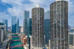 Unmatched Views. Architect Curated Renovation. True Turnkey Living. Perched high above the Chicago River in Marina City's prized West Tower, Residence 2409 occupies what many consider the most compelling tier in the entire community-offering sweeping river and skyline vistas with a rare glimpse of Lake Michigan beyond. From sunrise light dancing across the water to glowing city nights, the views here feel expansive, cinematic, and unmistakably Chicago, enjoyed from two private balconies with unobstructed exposure. This brand-new renovation is crisp, elevated, and move-in ready, allowing the iconic mid-century architecture to shine through with modern comfort and restraint. The custom-designed kitchen showcases white lacquered cabinetry, a glass backsplash and under-cabinet lighting, striking the perfect balance between form and function. An inventive sliding wall affords both expansive living and a private enclosed bedroom for sleeping. Engineered Rain Tree flooring-paired with a sound-deadening backing system-adds warmth and durability underfoot, while fresh paint throughout enhances the home's clean, cohesive feel. Comfort and convenience were clearly prioritized: two new HVAC systems, a new water heater, Mecho automated shades, and full-sized in-unit laundry elevate everyday living. Custom Elfa closet organizers maximize storage without visual clutter, keeping the focus on light, views, and flow. The building's full-service amenities include 24/7 door staff, valet parking, a fitness center, rooftop access, on-site boat rentals, and River North Market located within the complex. An upcoming common hallway refresh further enhances long-term value and community appeal. Steps from the Riverwalk and surrounded by world-class dining, culture, and transit-including the Blue Line just across the river-this is Marina City living at its most refined: architectural pedigree, exceptional views, and a renovation that lets the skyline take center stage.