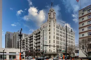 AVAILABLE JUNE 22, 2026: Wonderful loft condo in iconic River North building, the former Montgomery Ward administration building. Enjoy sunset views from the private balcony overlooking the Chicago River and easy access to the area's art galleries, dining, shopping and nightlife from this quiet perch. Unit features an open floorplan with 12' ceilings, concrete pillars, refinished hardwood floors in the main living space, gas log fireplace, kitchen island with breakfast bar, double closets in primary bedroom, separate shower/bathtub in primary bathroom, new HVAC (2025) and newer in-unit laundry (3 years old). A full amenity building, One River Place is near the East Bank Club, Erie Cafe, Riverwalk, Starbucks and Catalogue House Provisions. Rent includes 1 gig high-speed internet, fitness center, prime heated garage parking space, rooftop deck access during summer months, bike storage, and storage cage (approximately 5' x 4' x 3'). Sorry, no pets.