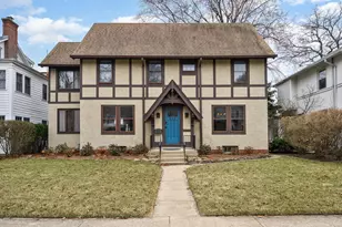 Charming and timeless, this five-bedroom, 2 1/2 bath single-family residence is tucked on a quiet cul-de-sac just steps from Lighthouse Beach, Orrington School, Northwestern University, and public transit. Built in the early 1900s, the home showcases classic Tudor-inspired details with stucco and timber exterior, beautiful original windows, and refinished hardwood floors throughout. Step inside the classic center-entry home to a spacious light-filled living room anchored by a wood-burning fireplace and built-in bookcases, and proceed to the cozy sunroom that fills the space with natural light. West of the entry is the welcoming dining room with beautiful windows surrounding the space open to a beautiful new kitchen with center island. The second floor includes four bedrooms and a full bathroom, plus a bonus room perfect for play space, study room, or office. The 3rd floor houses the primary bedroom with a full bathroom along with a cozy office nook. Outside, a lovely backyard and patio with pergola leads to the recently built one bedroom coach house above a spacious 2 car garage. Ideal for multi-generational living, the coach house offers a comfortable and accessible private space perfectly suited for an aging parent, guest, office space or rental unit. Thoughtfully designed for ease of use and mobility, the unit features an ADA-compliant kitchen and a full accessible bathroom. An operational lift provides convenient access, ensuring safety and comfort for residents with mobility needs. A lovely home in an ideal Northeast Evanston location.