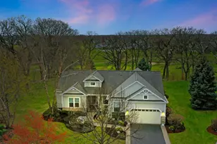 Rare and magnificent one-owner estate home nestled among mature oak trees offers a truly special living experience in the heart of Del Webb Sun City. This stunning Superior model is on a quiet cul-de-sac with breathtaking views of Hole 12 on the Whisper Creek Golf Course. Guests are welcomed at the front entrance with a unique fresh waterfall feature that sets the tone throughout. Inside, this meticulously maintained 3 bedroom, 3.5 bath home is loaded with upgrades, including a full finished basement. The heart of the home is a spacious open-concept living room and kitchen complete with a cozy gas-burning fireplace and custom mantel, wood floors, custom power window blinds, abundant white cabinetry with pull-out drawers, Corian countertops, a trash compactor, and a convenient island with seating-ideal for entertaining. This area opens to the bonus garden room filled with natural sunlight offering a tranquil space to sit, relax, and soak in the serene views. The large primary suite also overlooks the golf course and includes a sitting area with patio access, walk-in closet, walk-in shower, jetted soaking tub, and dual separate vanities for added comfort. A formal dining and living room with coffered ceiling provide an elegant space for entertaining, while a first-floor laundry and mudroom with utility sink and cabinetry offer everyday convenience. The deep, 2.5-car garage includes the bonus Illinois room for golf cart parking and extra storage shelving. The fully finished basement expands your living space dramatically, with a huge entertainment area, an additional bedroom and bathroom and two large storage rooms. Both additional bedrooms in the home feature their own full bathrooms, offering privacy and comfort for guests. And a dedicated library provides a quiet area for work for reading. Relax on the beautiful brick paver patio under a power awning surrounded by a professionally landscaped yard with an automatic irrigation system and enjoy peaceful, private views. Landscaping services are paid through September. A brick paver-lined driveway, garden arbor, gutter guards, and spectacular views complete the exterior charm. Located in Del Webb Sun City, a 55+ active adult community that offers unmatched amenities including three pools, tennis, pickleball, bocce ball, a wood shop, baseball field, fishing on a stocked lake, two lodges, a golf course, a restaurant, endless clubs and activities, and countless opportunities to meet new friends. This home is perfect for those who appreciate luxury, comfort, and resort-style living with a scenic view. Come experience everything this exceptional estate home has to offer!