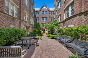 Welcome to Lion's Gate, a beautifully maintained vintage building nestled within the Ridgeland Oak Park Historic District. With over 900 SF of thoughtfully designed living space, blending classic architectural details with modern amenities, this large 1 bed, 1 bath unit is set back from the street offering a quiet living environment and serene courtyard views. Step into a sunlit interior adorned with hardwood floors and elegant coved ceilings that exude timeless character. The spacious living room provides a warm and inviting atmosphere, perfect for both relaxing and entertaining, along with an additional nook perfect for a separate seating area or desk for those with work-from-home needs. The kitchen features ample cabinetry, granite countertops, mosaic backsplash, a convenient breakfast bar, stainless steel appliances and separate dining area. The king-sized bedroom boasts large windows and a wall of closet space. Enjoy the convenience of in-unit laundry, central air conditioning, and a dedicated furnace, ensuring comfort throughout the seasons. Additional, dedicated storage space is also included in this pet-friendly building. A+ location, just steps away from downtown Oak Park & Forest Park, you'll have easy access to the Green Line, Metra, I-290, and a variety of local shops, entertainment and restaurant options. With an impressive Walk Score of 85, daily errands and leisure activities are just a short stroll away to all that this area has to offer. Don't miss the chance to own this delightful piece of history that perfectly balances vintage charm with modern living.