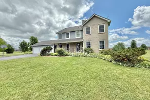 Tucked away on 1.25 acres in a quiet cul-de-sac, this classic brick and cedar two-story offers timeless style and modern updates. Inside, you'll find a grand foyer featuring gleaming hardwood floors & a striking oak staircase, framed by formal living and dining rooms on either side, both with tray ceilings. Freshly updated kitchen with painted cabinetry, new hardware, tile backsplash, granite counters, stainless steel appliances, double oven & a breakfast bar. Adjacent family room features a gas fireplace that leads out to a sunroom with vaulted ceiling, 2 skylights, tile flooring, and a second gas fireplace-plus sliders to the deck. Upstairs, all 3 bedrooms have vaulted ceilings. The spacious primary suite includes a huge walk-in closet with additional cedar closet & 2 en-suite baths-one with a soaking tub, the other with oversized shower. There is also a 2nd full bath with double bowl vanity for the other 2 bedrooms to share. The finished lower level with new carpet has a family room, office along with tons of storage! Hardwood floors, solid 6-panel doors, first-floor laundry, EV charger in the garage, central vac, newer Pella windows 2021, patio door 2025, pressure tank & iron curtain 2024, 3.5 car garage and tons more! Don't miss the opportunity to own this beautiful home located in peaceful rural location with space to spread out!