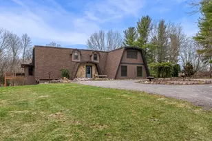 Tucked away in a private, storybook setting, this stunning almost 6,000 sq ft home offers an unforgettable blend of character, craftsmanship, and natural beauty. With 4 bedrooms, 4 full and 2 half baths, and a design that's anything but ordinary, this interior-designer-owned gem is a rare find. From the moment you arrive via the circle blacktop driveway, you'll feel the North Woods charm, surrounded by mature trees and nature's serenity. Step inside to soaring beamed ceilings, custom cabinetry, rich hardwood and tile flooring, and two open staircases. The kitchen is a Chef's dream featuring a large island, a Butler's pantry with an additional oven, and eat-in table space. The living room has built-in bench seating, a gas fireplace, and beamed ceilings. The home features thoughtfully designed built-ins, an open yet cozy layout, and a full-exposure walkout basement-bringing in incredible light and unbeatable views. The backyard boasts a limestone wall, a flowing creek, and breathtaking views year-round. The 30x40 outbuilding with a loft and spiral staircase adds a versatile touch-ideal for a studio or workshop. Enjoy the convenience of a 4-car tandem garage, and rest easy with a newer roof and windows. Whether you're gathered around the fireplace or taking in the peaceful surroundings from your deck, every inch of this home invites comfort, inspiration, and uniqueness.