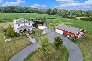 Stunning farmhouse-style estate on 10+ private acres offering the perfect blend of charm, space, and modern conveniences! This custom-built home features 3 bedrooms (possible 4th), 4 bathrooms and is thoughtfully designed for both comfortable everyday living and exceptional entertaining. Outdoor living is a true highlight of the property. Enjoy a heated pool professionally maintained , expansive outdoor living areas, and a fully equipped outdoor kitchen with a built-in gas grill / gourmet smoker, and an outdoor fireplace. The impressive Outbuilding with Garage Doors, also added in 2022, expands the property's entertaining potential with its own 3/4 bath , combination heating and cooling system, Kegerator, and tankless water heater, making it ideal for gatherings. Head back inside through your Screened in Porch that leads to your Chef's Kitchen with an amazing and unique Pantry and large center island. There are multiple gathering spaces in the home--Living Room with Fireplace and built-ins, Den and Dining Room. There is a convenient main floor guest bedroom and bath. Upstairs to 3 large bedrooms. Main Bedroom with attached bath and walk in closet. 2 More Bedrooms and Full Bath. Finished Basement with Family Room, Wet Bar, office, Bath and Extra storage. There is also an exit from the basement to the pool area. Numerous modern conveniences enhance daily living, including surround sound speakers, water purification systems, 2 beverage/wine refrigerators, main floor laundry and a whole-property backup generator. Very Large Detached Garage for all your storage needs! Approximately 8 acres of the land are currently farmed with a local farmer and the new homeowner may choose to continue the arrangement or decide to make it a mini farm with horses. Offering privacy, open land, and resort-style amenities, this unique property presents a rare opportunity to enjoy peaceful country living with the comfort and convenience of a thoughtfully designed modern home.