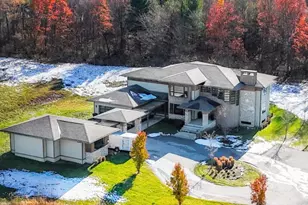 A rare opportunity to own one of Liberty Township's most sophisticated MODERN ESTATES--an architectural statement of DESIGN, PRIVACY, and CRAFTSMANSHIP. Completed in 2022 on 5.35 secluded acres, this 7,470+ sq ft contemporary masterpiece delivers refinement typically found in premier luxury markets. A grand CURVED STAIRCASE framed by a WALL OF GLASS welcomes you into a residence curated with intention at every turn. The SHOWPIECE SMART KITCHEN features CAFE APPLIANCES, QUARTZ surfaces, TWO WARMING DRAWERS, a WINE COOLER, DUAL WALK-IN PANTRIES, and FLOOR-TO-CEILING CUSTOM CABINETRY--combining beauty with exceptional functionality. Expansive living and dining areas flow effortlessly, complemented by a private main-level OFFICE WITH FIREPLACE and a convenient MAIN-LEVEL LAUNDRY. The upper-level PRIMARY SUITE is a true SANCTUARY, offering a PRIVATE CONNECTED SUNROOM ideal for morning coffee, reading, or quiet retreat. Enjoy a SPA-INSPIRED BATHROOM and a CUSTOM BOUTIQUE-STYLE WALK-IN CLOSET, while two additional upper-level bedrooms each feature PRIVATE EN-SUITE BATHROOMS. A spacious BONUS ROOM adds versatility for play, work, or lounge space. The DAYLIGHT BASEMENT elevates the home into a resort-like destination with a PROFESSIONAL THEATER (STADIUM SEATING), an ELEGANT WET BAR, a recreation lounge, guest quarters, and a full bath. Additional highlights include EUROPEAN DOORS/TRIM, SOLID WHITE OAK FLOORING, a TANKLESS WATER HEATER, a WHOLE-HOUSE GENERATOR, and a 4-CAR GARAGE configuration (ATTACHED + DETACHED). The expansive grounds offer room for a FUTURE POOL or outdoor oasis. A property of this caliber--combining PRIVACY, MODERN CONSTRUCTION, ACREAGE, and proximity to major highways and Duneland schools--rarely becomes available. An EXTRAORDINARY ESTATE offering unmatched DESIGN, SPACE, and PRESENCE.