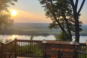 Discover this special, one-of-a-kind, authentic log home with spectacular, 7-mile river bend views. This masterpiece of craftsmanship sits on a private lot directly across the river from the Rising Sun Casino and the Rising Star Ferry. Inside, find stunning hand-hewn beams, stairs, and two impressive stone fireplaces. Modern updates include all new ceiling fans and many upgraded light fixtures. The upper level features an incredible loft, currently used as an office, and a spectacular, warm, and welcoming bedroom with wood beams and new carpet. The new deck is an entertainer's dream, perfectly designed to support a hot tub while you take in the breathtaking scenery. Practical luxuries include a 2-car garage with an EV plug and a convenient main-floor laundry (convertible back to a third bedroom). The finished walk-out basement expands your living space with a wet bar, LVP flooring, and a stone fireplace prepped for a wood stove. The Master bedroom is a serene retreat with new LVP flooring, two closets, and abundant natural light. Buyer responsible for verifying all information including schools, tax info, etc. This home has been meticulously maintained and the logs have been newly stained.