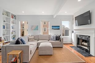 Spacious and elegant three bedroom, two bathroom 1680 sq foot duplex penthouse located on a quiet street loaded with character and charm! Enter into a sun-splashed open living room with pumpkin pine floors, fireplace and custom built in shelving! Upscale kitchen with Bosch SS appliances, sophisticated cabinets, granite countertops & bar seating with pendant lighting. Lovely bedroom with sliding barn door, closet and access to private deck. The bathroom boasts an oversized shower and custom vanity. The second level offers two more large bedrooms, a cedar walk-in closet, built-in shelving and a spectacular bathroom with white carrara double marble vanity, soaking tub w/white tile surround and linen closet. Sleek, modern staircase awaits your ascent to the spectacular private roof deck with incredible views! Exposed brick, w/d in unit, C/A, enormous storage in basement and common patio space.