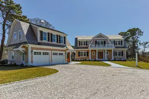 This exceptional custom residence is situated in a prime North Chatham location with a nearby association beach. Seamlessly blending comfort and sophistication, the home spans three levels of generous open floor plan spaces and is located on over one acre. The main level interiors flow freely from foyer to a large great room with a living room, dining area and well appointed kitchen. There is a guest bedroom and ensuite bath, office, laundry and mudroom. Above is a luxurious primary suite with views of Crows Pond, Pleasant Bay, the Atlantic and beyond. There are two additional exquisite en-suite bedrooms, laundry and a loft area for entertaining. The lower level accommodates a family room, exercise room and bath. The 4 bedroom main house is complemented by a detached garage with one bedroom guest quarters above. Replete with statement touches throughout, this home is designed for both family life and easy entertaining with a spa-like pool with hot tub. This inviting home is impeccably designed and a rare Chatham find.