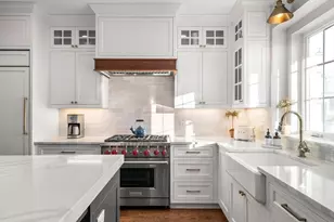 Polished & exceptionally well sited, this stand-alone luxury townhome offers rare single-family comfort w/ refined, low-maintenance living. Set in a premier back-row location w/ sweeping conservation views, a coveted double-wide lot creates a private, expansive outdoor garden ideal for entertaining. Inside, the open-concept layout is filled w/ natural light & defined by clean lines, generous proportions & elevated finishes. A chef's kitchen w/ Wolf, Bosch & Sub-Zero appliances, custom cabinetry, oversized island & farmhouse sink flows into dining & living spaces highlighted by soaring coffered ceilings, refined woodwork & a gas herringbone fireplace. A 1st-flr primary suite provides a peaceful retreat w/ spa-inspired bath & custom walk-in closet. Upstairs, a spacious 2nd living area (easily convertible back to a 4th bedroom), 2 add'l bedrooms, lg family bath, ample storage & natural light complete the upper level. A powder room, mudroom,1st-floor laundry & unfin. LL complete the home.