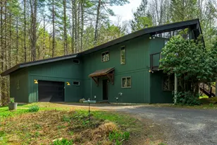 Spacious, updated and meticulously maintained modernist 4 BR/3 bath escape sits on 4.8 wooded acres, surrounded by mature birch trees and rhododendrons, seasonal creek, and a footbridge to bonus cabin in the woods. Open kitchen (Viking, Bosch)/LR layout featuring a Wittus Shaker wood stove opens to 3-sided raised deck and large screened porch. Two primary bedrooms feature sliding doors to balcony/deck space, and attached garage provides sheltered parking and ample storage. With new energy efficient heat pump/ac system, backup generator, fiber internet plus a proven short-term rental property history, this one has it all. Steps to NM Land Trust nature preserves and beautiful Umpachene Falls Park as well as the Southfield Store, Mill River General Store, Old Inn on the Green and more.