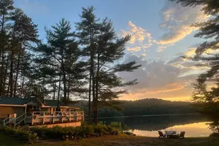 Tucked away in a truly unspoiled setting, this quintessential Maine cottage offers the peace, privacy, and natural beauty that so many seek--but rarely find. Set on a quiet, 45-acre pond, the property enjoys coveted western exposure, delivering breathtaking sunset views across the water and toward the mountains beyond. Even more special, the land across the pond is unbuildable, ensuring your views remain forever unchanged. With few neighboring homes and a setting that feels wonderfully remote, this is a haven for those who value quiet moments and connection to nature. Spend your days paddleboarding, kayaking, swimming, or casting a line into waters known for smallmouth and largemouth bass, white and yellow perch, and pickerel. Birdwatchers and wildlife enthusiasts will feel right at home, surrounded by the sights and sounds of Maine's natural landscape. The property is designed for effortless enjoyment, both indoors and out. A fire pit and grill invite evenings under the stars, while a pedal boat with biminy top, along with kayaks and paddleboards for all ages, may be included in the sale (negotiable), making it easy to step right into the lakefront lifestyle. All this and it's just 20 minutes from Sunday River Resort. Whether you're seeking a peaceful retreat or a place to create lasting memories, this rare offering captures the very essence of Maine cottage living.