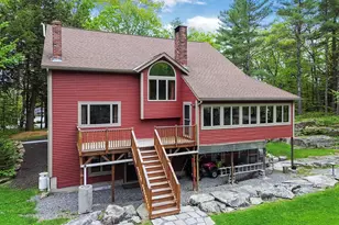 Charming 3-Bed, 3-Bath saltbox nestled on a picturesque lot framed by dramatic granite outcroppings from an old quarry! This beautifully maintained home offers three full floors of finished living space, a large two-car garage with ample storage, and a charming, partially insulated cabin with electricity - perfect for a creative retreat, home office, or guest space. Inside, the first floor welcomes you with a practical mudroom entry from the covered front porch. The open layout seamlessly connects the updated kitchen, featuring Corian countertops, to the dining area, where a cozy wood-burning fireplace adds warmth and ambiance. An expanded living space - once an enclosed porch - now offers walls of windows with breathtaking views of the natural backyard landscape. A spacious living room, a full bath, and a first-floor bedroom complete the main level, offering flexible living options. Upstairs, you'll find two generously sized bedrooms and convenient laundry hookups. One bedroom features extra eave storage and shares access to a full bath. Across the hall, the primary suite is a true sanctuary, boasting double closets and a private en-suite bathroom with a classic clawfoot tub. The fully finished lower level offers a versatile bonus room with a wood stove and durable epoxy floors - ideal for a recreation room, gym, or hobby space. A workshop and utility room with daylight walkout access to the backyard complete this level. Outdoor living shines here, with a spacious back deck off the dining area - perfect for grilling and entertaining - and a lush front yard featuring raised garden beds ready for your seasonal plantings. The natural granite landscape sets a truly unique and peaceful backdrop. Perfectly positioned for convenience and recreation, this property offers direct trail access connecting to the Marketplace at Augusta, and is just minutes from MaineGeneral Medical Center, downtown Augusta and I-95 - blending quiet, scenic living with outstanding accessibility
