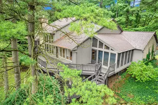 Tucked among mature trees in a quiet, secluded setting, this beautifully updated Saginaw Hills home offers serene pond views, a flexible layout, and thoughtful upgrades so it's ready for you to move right in with plenty of time to host summer BBQs and get settled before school starts! Step onto the covered front porch and into the dramatic two-story great room, where a statement fireplace and a wall of windows looking out onto the water create a warm and inviting focal point. Adjacent to the great room is the brand-new luxury kitchen, featuring slim shaker wood cabinetry, quartz countertops, high-end stainless-steel appliances including a double oven, and a large island with breakfast bar seating. The kitchen sink, refrigerator, and pot filler share a reverse osmosis system, and a built-in wet bar with beverage cooler makes entertaining a breeze. The dining area is surrounded by windows and opens to a spacious deck overlooking the pond, while a screened-in porch offers shaded, insect-free outdoor enjoyment. Timeless wood floors run throughout the main living spaces. Savor one-level living with three bedrooms and two full bathrooms on the entry level. The luxurious primary suite offers a private deck with tranquil views, a walk-in closet, and a completely renovated bath with dual vanity, soaking tub, separate rain shower, and heated floors. Two additional bedrooms with walk-in closets share an updated hallway full bath. The main level also includes a bright front study/den and a mud/laundry room with extra storage adjacent to the attached two-car garage with new door and myQ smart opener. Upstairs, a versatile loft overlooks the great room and is ideal for a playroom or home workspace. The walkout lower level provides exceptional space and versatility, with a generous family/rec room with fireplace, an additional bedroom and full bath, and a flex room with access to the lower deck and yard - ideal as a private guest or in-law suite. There's also a massive unfinished area ready for your customization. Outside, enjoy the convenience of low-maintenance natural landscaping with a sprinkler system. Recent updates include new lighting, flooring, trim, paint, and doors, as well as a new roof (2025), new front and garage doors, and new septic tanks. All this privacy and natural beauty, plus Ann Arbor Schools with lower Scio Township taxes, just minutes from downtown and the UM campuses!
