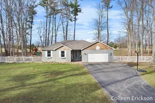Welcome to this exceptional ranch-style home, beautifully located steps from The Links at Bowen Lake Golf Course, just mins away from Bowen and Lincoln Lake. Privately set at the end of a cul-de-sac, this home sits on over an acre of land surrounded by mature trees, offering stunning views and tranquility. With 4 spacious bedrooms and 2 full baths, this home boasts an open floor plan with abundant natural light to highlight the serene country setting. The living room features cathedral ceilings and a striking fireplace with a mantel, creating the perfect space for relaxation. The large master bedroom includes a private bathroom with a walk-in shower for added comfort. Enjoy the convenience of main-level laundry and a large, finished basement with endless possibilities. Won't last long!