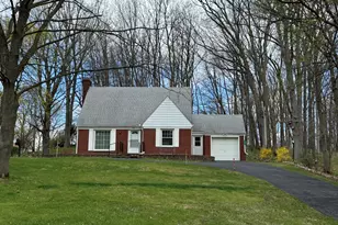 This charming colonial brick home offers a perfect blend of comfort and style, situated on a wooded .59-acre lot right in town. The inviting living room features a red brick fireplace, creating a warm and cozy atmosphere, also enjoyed at family gatherings in the dining area. The main floor boasts a den with beautiful knotty pine paneling, perfect for a home office or an additional bedroom. Long hardwood floors under carpet main floor and upstairs. A 1.5-car attached garage adds convenience, while two separate fenced areas in the rear yard cater to both pets and children, offering safety and enjoyment. The property is surrounded by vibrant flower beds, adding to the charm of the fantastic landscaped hillside, making this home feel like a private retreat. For outdoor living, there is a lovely brick patio in the rear and a cement patio in the front. A blacktop circle drive provides ample parking, adding to the home's curb appeal. The basement includes an additional bedroom, offering flexibility and extra living space. This well-maintained home is a rare find, truly a gem in its peaceful, wooded setting.