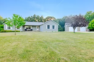 Improved Price! Assumable VA at 2.375% interest! Custom-built walkout ranch in a peaceful country setting. This home offers a spacious, light-filled floor plan with cathedral ceilings and rich hardwood flooring throughout the main. Five bedrooms on the main floor and three full baths provide room for everyone to spread out, while the kitchen and dining area look out onto a wooded backdrop, a view best enjoyed over morning coffee or summer evenings on the 14'x20' deck. Prefer a little more sun? The expansive backyard offers space for summer yard games, room to explore, and a spot to park your boat and camper. The main floor includes a private primary suite with a walk-in closet and a relaxing jacuzzi tub, along with the convenience of main floor laundry and an attached two-stall garage. Downstairs, the walkout level features a comfortable rec room and an officeideal for work or play. The fully finished lower level offers new carpet, two generous family rooms, a full bathroom, abundant storage, and a sliding door that opens to the backyard. New roof 2023. Hobbyists and entertainers will appreciate the expansive 32'x40' heated pole barn, ready for gatherings, workshop projects, or storing your favorite toys. Located just two miles from award-winning Thornapple Kellogg Schools and an easy drive to both Grand Rapids and Hastings, this is more than a houseit's the place to create a lifetime of memories.