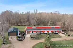 Just 3 minutes to Gun Lake, this updated home on 2.2 acres with a 24x40 outbuilding offers a unique opportunity for multi-generational living, supplemental income, or simply a guest suite. Featuring an open concept floor plan with vaulted ceilings, laundry room, and attached garage with loft storage for each unit. The larger unit offers 2 bedrooms, 2 full bathrooms, light-filled, spacious kitchen with island & SS appliances, newer LVT flooring, fresh paint, and a flex room that can function as an office, large pantry/storage, or non-conforming 3rd bedroom. The other unit offers 1 bedroom, 1 full bathroom, updated flooring and paint. The 24x40 outbuilding has electricity, 10' sidewalls, & 9' door. New roof on house & barn 2021, fiber internet, & firepit area in the private backyard. Built with energy efficiency in mind, this berm home has natural insulation provided by the earth resulting in lower heating costs, a quiet living space, and reduced environmental impact.