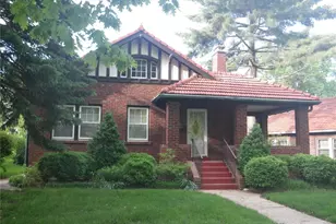 Wrap-around covered front porch welcomes you to this well-maintained, brick home w/clay tile roof in desirable Pasadena Park. Newer windows and original wood floors. Spacious LR boasts brick fireplace (being sold as non-functional) flanked by original stained glass windows. French doors open to a small bedroom with an abundance of windows which could also be a craft room or office. Eat-in kitchen includes a gas stove, fridge and large pantry. 2 good-sized bedrooms and a full bath complete the main floor. The cute bath features the original vitrolite tile, ceramic tile flooring, linen closet and window shutters. Easily expand your living space in the spacious basement. New A/C in 2024. Nicely landscaped fenced backyard with one car detached garage with maintenance-free siding. Close to public transportation, the Metrolink, places of worship, restaurants, UMSL, Touhill Center. This home has only had 2 owners. The seller believes the family purchased the home in 1933. It appears to be in good condition; however, the home is being sold in its current (As Is) condition.
