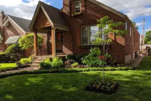 Situated on a picturesque, pin-oak tree-lined street in the highly sought-after Northhampton neighborhood, this quintessential all-brick bungalow is a city dweller's dream. From the moment you arrive, the stunning curb appeal captivates with a welcoming covered porch, cedar columns, board-and-batten shutters, refreshed landscaping and window boxes. The original front-door paired with a hanging porch light welcomes you home. Step inside to discover a seamless blend of vintage character and modern comfort. The front living room boasts original hardwood flooring, intricate millwork, custom built-in shelving and a bank of windows complemented by two glass-block windows that flood the space with natural light. The dining room is a natural extension to the front living space where you'll find a city-chic tin ceiling, updated lighting and double windows that create the perfect setting for gatherings. The thoughtfully updated kitchen marries historical rustic charm with contemporary updates, featuring stainless steel appliances (fridge stays!), a gas cooktop with exhaust fan, quartz countertops, a tin backsplash, recessed lighting and beadboard ceiling for a chic yet cozy vibe. Two back-lit cabinets with original stained-glass custom fronts add a unique touch, while the adjacent breakfast room offers a sunny spot to enjoy meals, entertain or admire the original stained-glass windows. And don't miss the expanded kitchen pantry; a rare South City amenity! For the ultimate convenience, the primary bedroom is located on the main floor that offers a spacious walk-in closet, double windows, ceiling fan and crown molding. The full bathroom completes the main level. As you climb the back staircase to the upper level, a skylight illuminates the way to two spacious rooms with central heating and air, designed for bedrooms, playrooms or home office space. The lower level expands the living space with a fourth bedroom (with a private entrance and walk-up access to the backyard), a full bathroom and a recreation area for lounging or play. An additional 100 square feet of storage, complete with built-in shelving, and a washer/dryer (included) round out this versatile level. Outdoor living is a highlight, with a newly stained, covered deck-perfect for morning coffee or evening cocktails-overlooking the fully fenced backyard. A calming custom waterfall adds a touch of tranquility, while a sunshade offers relief from western sun exposure. Parking is a breeze with an oversized 1-car garage and adjacent carport, offering two off-street spaces. With an unbeatable location (just a two-block walk to Tilles Park), this rare combination of charm, modern updates and space is a treasure waiting to be yours. Don't miss your chance to experience city living at its finest!