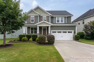 Wonderfully maintained Craftsman-style home that blends timeless charm with modern comfort! Over 3,000 square feet and set on a beautifully landscaped lot with a covered rocking chair front porch, wood deck, and open backyard. Inside, you'll find engineered hardwoods throughout the main living areas, carpet in the bedrooms, and tile in the bathrooms. This desirable floor plan has a first-floor bedroom and full bath while the rest of the bedrooms and bonus room are upstairs. The family room centers around a gas fireplace with stone surround and receives plenty of natural light! The nearby sunroom is cozy and bright for reading and relaxation. The eat-in kitchen offers granite countertops with tile backsplash, stainless steel appliances, built-in oven, built-in convection microwave oven, gas cooktop with vented exhaust, large island with bar seating, under cabinet lighting, built-in workstation/desk, walk in pantry, and dedicated eating area. Separate dining room can be used alternatively as an office. Retreat to the luxurious primary suite with tray ceiling, double vanities, separate shower, garden tub, and two walk-in closets. Additional highlights include central vacuum, gas tankless water heater, security system, second floor laundry room, and attached 2 car garage. Prime location close to shopping with easy access to major roads and highways like 64 and 540. Just a short commute to RTP, RDU, Cary, or Raleigh. The refrigerator, washer, dryer, and bonus room TV can convey to buyers with an acceptable offer.