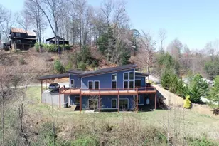 Just minutes from downtown Bryson City, this modern home offers breathtaking views and an ideal layout for comfortable living and entertaining. With all hardwood flooring throughout, a spacious open floor plan, and a chef's kitchen featuring a gas stove, this home is perfect for hosting friends and family. The large walk-in closet attached to the primary bedroom is truly a dream, while the gas fireplace adds a cozy touch to the living space. The home includes 2 bedrooms on the lower level and 2 on the upper, (septic is for 3 bdrm) with a huge basement living area or game room for extra space and versatility. Enjoy the outdoors on the expansive back deck or in the level yard, ideal for a hot tub or outdoor gatherings. The property offers no restrictions on short-term rentals, making it a great investment. A 2-car carport, hardboard siding, and a durable metal roof complete this stunning package. Light restrictions.