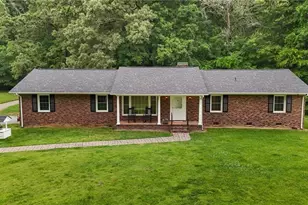 Tucked away on 3.33 acres of serene, private land, this one-of-a-kind 4-sided brick ranch feels like a peaceful nature retreat. A long driveway leads to the beautifully maintained 1-level home, surrounded by mature trees & expansive lush green space. Step inside to find HW/tile flooring & crown molding throughout, & a 3 bed/2 bath layout designed to embrace natural light-especially in the spacious living room w its stunning wall of windows. The dining room features a dramatic floor-to-ceiling stone FP w gas logs, creating a cozy, elegant focal point. The kitchen is both stylish & functional w quartz ctrs, tile b/s, stainless appliances, & a massive walk-in pantry. The primary suite offers a walk-in closet & tile-surround walk-in shower. Outside, enjoy a vast open lawn perfect for gardening, an ADU or expansion, woods for privacy, a 2-car carport w storage, powered barn and lean-to, plus whole-house generator, water filtration system, security system, & new septic (2020). Welcome home!