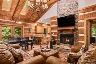 Located within the gates of Mountain Air, one of the Southeast's most distinctive mountaintop communities, this fully furnished Timberwright Heritage log home offers a rare blend of craftsmanship, privacy, and resort-style living. Mountain Air is known for its private runway, championship golf course, and luxury club amenities, creating a lifestyle unlike anywhere else in Western North Carolina. Inspired by the design philosophy of renowned North Carolina artist Bob Timberlake, the home showcases hand-hewn logs with traditional dovetail joinery, soaring timber ceilings, and elegant natural finishes that capture the spirit of classic Appalachian architecture. The main living area features a dramatic floor-to-ceiling stone fireplace, warm wood interiors, and an open layout ideal for gathering with family and guests. Designed for both comfort and entertaining, the home offers four bedrooms each with its own full bath, providing privacy for owners and visitors alike. The spacious lower-level great room features a second stone fireplace and large entertainment area, creating the perfect retreat after a day enjoying the mountains. Outdoor living is equally inviting with multiple decks surrounded by lush forest, a relaxing oversized hot tub, sauna, cold plunge and peaceful spaces for dining or unwinding beneath the Blue Ridge canopy. Ownership within Mountain Air provides access to a private club lifestyle including golf, dining, fitness center, luxury spa, sports courts, parks, and scenic walking trails. The community's unique private runway allows residents and guests to fly directly to the mountain. Currently operating part time as a short-term rental, the property offers flexibility to generate income while serving as a personal mountain retreat. Fully furnished and move-in ready, this home delivers authentic craftsmanship, resort amenities, and an exceptional mountaintop lifestyle.