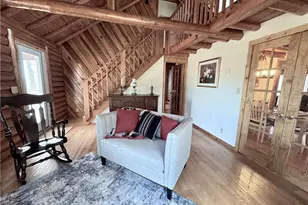 You can have it all with this beautiful log cabin situated on approx. 11 unrestricted acres featuring a healthy pond and walking trails. This home boasts hand-shaved wood floors, a rock fireplace with gas logs, and an open loft. The modern gourmet kitchen features stainless appliances, updated baths includes custom features. Enjoy the outdoors from the deck or explore the nearby NC Wildlife river access only a few miles away and several vineyards and wineries nearby. Includes a great partial basement with a wood stove and workbench, replacement windows, and a chicken coop. Owning this home feels like a permanent vacation! Transferable termite bond on property.