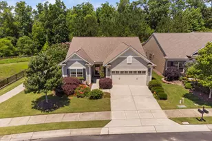 Stunning ranch home on gorgeous lot with wooded and pond views from every window! Home features an expanded covered porch with stone floor overlooking gardens, the woods and large landscaped pond. The yard is fenced with additional space surrounding it creating a private and serine setting. Open floor plan with hardwoods thru-out, stacked stone fireplace in great room and speaker system inside and out. Bright kitchen with upscale finishes and gorgeous garden and pond views from the windows. Separate study with built ins, custom touch shades and window seat overlooking gardens. Cozy rear sunroom filled with natural light and views from every side. Spacious primary suite with large windows, luxury bath with step in shower, dual vanities and large WIC. Front guest room with adjacent full bath. Mature landscaping and gardens surround this home and it is just steps from the n'hood walking trail. Enjoy resort style clubhouse with indoor and outdoor pools, courts, fitness and endless events. Convenient Brier Creek location with easy access to shopping, services, restaurants and the airport!