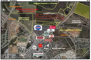 For Sale. Gently to strongly sloping topography. +/-12.3 ac total: +/-7.6 ac usable land east of drains & +/-3 ac usable land west of drains. +/-18 additional ac (listed with 2 other firms) available south to Costco. Potential to purchase additional lands north also. Access to US 401: NCDOT has approved developer installed turn signals for a U-turn and left over only at Caddy Rd (for southbound 401 traffic) and a U-turn and left over only at an existing U-turn approximately 0.3 miles N of Caddy Rd (for northbound 401 traffic). Garner planning dept. informs that a 75' public ROW boulevard running parallel with US 401 on the west side and connecting to the Bennett assemblage to the north and Costco parking lot road stub to the south will be how these parcels need to be developed. Bennett assemblage surveys are attached in the photos. Call for more info!