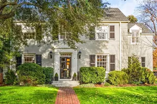 Gorgeous, classic Irving Park brick home - prime location near park and quick stroll to Greensboro Country Club. 9 foot ceilings on main level, beautiful hardwood floors, custom moldings, built-ins, designer wallpaper, generous rooms and large wet bar. Bright and sunny kitchen with inset cabinetry, icemaker and marble countertops. Large den with a wall of windows that opens to a private bluestone patio. Huge primary suite on main level - gorgeous en-suite bathroom with an oversized closet. Large laundry room with a soaking sink on the main level! Upstairs additional 3 bedrooms; Flexibility of a 2nd primary bedroom (up) which has en-suite bathroom plus master closet and office! 2 fireplaces with gas logs. 2-car detached garage. Comfortable and beautiful in every way!