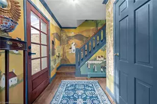 Welcome to a rare Greensboro estate-an elegant sprawling ranch nestled on 1.5 acres in the very heart of the city. This residence blends timeless sophistication with unique artistry, featuring original American folk art murals and refined architectural details. A glass-lined breezeway opens to both a serene front courtyard and a tranquil zen garden with waterfall, offering a captivating setting for private retreats or grand gatherings. Inside, the stately living room boasts brick floors and paneled walls, while the inviting den is warmed by a classic brick fireplace. Designed for effortless entertaining, the home transitions seamlessly from gracious interiors to lush gardens and courtyards. A separate outbuilding provides flexible space for a studio, potting shed, or private hideaway. Truly a one-of-a-kind property combining craftsmanship, elegance, and natural beauty in one of Greensboro's most sought-after locations. Roof new 2024
