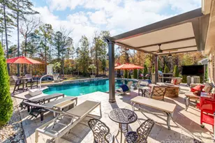 Welcome to this stunning 1.5-story luxurious home, with over $300,000+ in high-end upgrades, offering an exceptional blend of entertainment, comfort, and accessiblity with being in Greater Charlotte's Top Tier Schools! This Home is unparrellel of its kind, offering Resort Style features including Movie Theatre, High-End Custom Salt Water Pool and Travertine Terrace, Custom Firepit, and a pergoloa that has the functionality to open and close making it an enclosed porch! So many upgrades! The main level hosts three spacious bedrooms, including a master suite with upgraded flooring, a walk-in closet, dual vanities, and direct access to both the pool and a private screened-in porch that overlooks the fully decadent fenced in backyard that backs up to a picturesque horse farm. The gourmet kitchen boasts an open concept with a double oven, walk-in pantry, and stylish finishes. A dedicated laundry room adds convenience and function to the main floor layout. Upstairs, a full movie theater, additional bedroom, full bath, and man cave create an impressive leisure and guest space. Luxury shades that open and close with a flip of a switch refine the home's interior. The upgraded stone-wall fireplace adds warmth and elegance to the main living area. The garage features upgraded flooring, offering durability and a polished look. Modern living is elevated with a $20,000 whole-home generator, comprehensive smart-home features, and ADT security with expanded video coverage. Altogether, this home delivers unmatched craftsmanship, thoughtful upgrades, and resort-level amenities in a breathtaking setting.