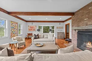 Perched atop a knoll on five private acres, this classic Cape embraces the outdoors with stunning views of Stowe Mt. Resort, Green Mts, and Stowe Pinnacle from nearly every room. Approach scenic Upper Hollow, pass the historic Grandview Farm Barn, and arrive at a secluded haven bordered by two babbling brooks. Inside, sunlight pours across an open main level where large wood beam accents mingle with wide-plank floors and an impressive hearth anchoring the living area. The dining area flows to a beautiful country kitchen. A serene main-floor primary suite enjoys a three-season porch perfect for dawn coffee or night entertaining. The additional bedroom is spacious, with a third bedroom/family room with a fireplace. The partially finished lower level hosts a recreation room, workshop, and ample storage with the opportunity to expand. A two-car garage with direct entry keeps winter at bay, while wraparound stone walls add charm. Enjoy gatherings and star-gazing by the firepit. Quiet yet convenient, just minutes to Stowe Village, world-class skiing, biking, and dining-this is the ideal mountain escape or year-round residence. Outdoor enthusiasts will love the sun-filled deck to take in the views.