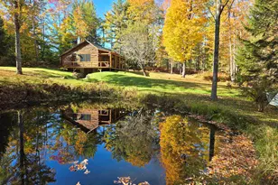 If you were to imagine the idyllic Vermont log cabin, this is it. Privately situated on 6.7 acres surrounded by manicured lawns, woods and a small pond, all at the end of a beautiful wooded lane. Sit on the front porch overlooking the serene setting or cozy up to the firepit on a chilly fall evening. The cabin has been upgraded to perfection with all new Anderson windows and doors, new appliances, new gas stove, insulated walkout basement, a new water pump and new underground electric service. In addition there is a relatively new propane powered standby generator plus super high speed fiber optic broadband. A three bay barn/garage with EV charger is located just a few steps from the house. With just a few exceptions, the high quality furnishings shown in the pictures, right down to the dishes, are included in the sale. Currently formatted to sleep six. Close to Woodstock, Barnard General Store, Silver Lake and Silver Lake State Park and beach. Moving in just involves you bringing your suitcase!